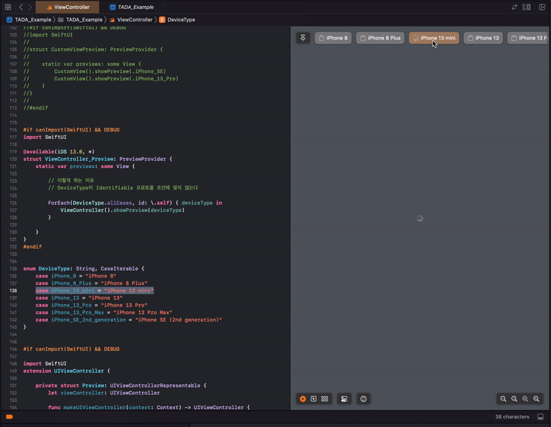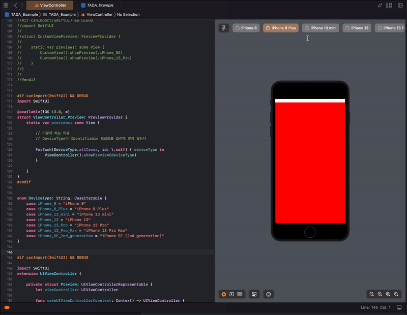 Preview로 보고 싶은 VIewController 작성